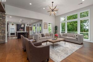 Experience timeless elegance in this beautifully appointed home located in the prestigious Glenmorrie neighborhood of Lake Oswego. Nestled on a generous lot surrounded by lush landscaping and mature trees, this residence offers the perfect blend of classic charm and modern luxury. Inside, you’ll find an expansive layout featuring rich hardwood floors, custom millwork, and abundant natural light. The gourmet kitchen is a chef’s dream, equipped with high-end stainless steel appliances, slab granite countertops, and an oversized island-perfect for entertaining. The main living spaces flow seamlessly to a private backyard retreat with a large patio, ideal for outdoor gatherings. A luxurious primary suite offers a spa-inspired bath and a spacious walk-in closet. Additional features include a formal dining room, home office, bonus room, and a three-car garage. High ceilings on both floors, plus completely fenced yard. Just minutes from downtown Lake Oswego, top-rated schools, parks, and riverfront trails, this is a rare property to own in one of the city’s most sought-after neighborhoods.