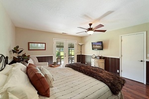 2 homes on 5 acres. Features a beautifully upgraded 3 bed, 2.5 bath home offers modern comforts, custom finishes, and energy efficiency with owned solar. The open layout features high ceilings, a gourmet kitchen, and a luxurious master suite with dual showers and patio access. Situated on a versatile property, it includes a large garage, barn/shop for animals and RV, multiple pastures and shelters for animals, and ample storage perfect for hobby farming or equestrian use. A private 2 bed, 1 bath second residence with its own yard and septic adds flexibility. With a saltwater pool, outdoor kitchen/BBQ area AND a second indoor kitchen, greenhouse, and stunning natural surroundings, this property is a rare find for those seeking space, privacy, and endless possibilities!