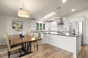 Step inside to find new laminate flooring guiding you through a bright, open floor plan with vaulted ceilings designed to showcase breathtaking river views from the living room, framed by stunning Andersen windows and slider. The newly remodeled chef’s kitchen is a showstopper, featuring an oversized island, leathered granite countertops, Crystal cabinets, high-end appliances, and designer lighting throughout.