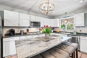 Spacious and versatile multi-level home ideally located near the new Brown Elementary School, Veterans Middle School, the High School, and just minutes from the beach. The main level features three generously sized bedrooms, including an en suite primary with a ¾ bath and double closets. The sunlit living room offers a striking wall of windows and a fireplace with a marble hearth, flowing seamlessly into the formal dining area. The updated kitchen is a chef’s delight, showcasing white cabinetry, stainless steel appliances, and a marble center island-perfect for entertaining. Just off the kitchen is a bonus room ideal for a home office or playroom. A covered porch overlooks the beautifully landscaped corner lot with a private patio, perfect for outdoor relaxation. The finished lower level adds even more living space with a newly updated family room, two additional bedrooms, a full bath with shower, and laundry area. The oversized two-car garage provides ample storage. Prime location