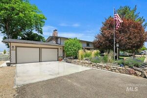 $50,000 PRICE REDUCTION! Want space? This home sits on a spacious 1+ acre lot in Nampa! Want to start a hobby farm lifestyle and self-sufficiency? There is space for trailers, RVs, plus room for a garden, chickens, and more, with an XL Shop to work in! Enjoy entertaining inside and out? With mature landscaping, a large, charming deck overlooking the gorgeous backyard, a welcoming covered porch, and inside having generous living areas filled with natural light, a cozy fireplace, and a kitchen with an abundance of counter space and plenty of cabinet space-perfect for big gatherings or quiet, peaceful mornings with your chickens! Need space for guests or family members to move-in? The lower level offers flexible living space with rustic wood-beam ceilings, giving you room for a game room, media den, or multi-generational living setup. This home CHECKS ALL THE BOXES and is ready for you to move in! A must see!