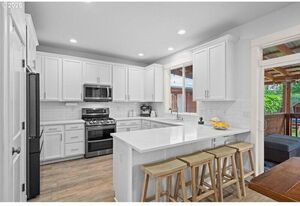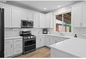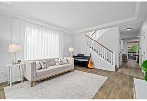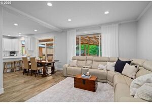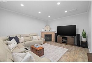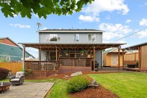 Light-filled and immaculate, this cul-de-sac home offers a large private yard with RV parking and a 30-amp hookup. Vaulted ceiling, gleaming waterproof laminate floors, and a cozy gas fireplace highlight the spacious family room, which flows seamlessly to an expansive covered deck. A striking staircase leads to the grand second floor, where the owner’s suite awaits-a peaceful retreat with vaulted ceiling, soaking tub, separate shower, and walk-in closet. The bright living room, with its coved ceiling, is perfect for both relaxing nights and hosting special guests. The gourmet kitchen features quartz counters, black stainless steel appliances, an eating bar, and a sunlit dining area. Outside, the Zen-like fenced backyard, complete with gardens and a covered deck, creates a tranquil escape. All just minutes from Downtown Gresham shops, restaurants, SE Community Park, and more.