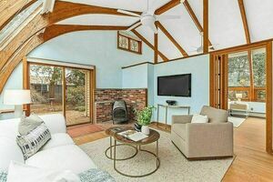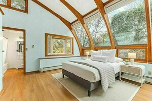 The modernized kitchen (2012) has maple cabinets & the Family Room (with laundry hookups) offers options for flexible living! The Garden Room is the show stopper! It has high cathedral ceilings, tons of light & is split into two parts: the Sitting Room and then the Primary Suite. Upgrades include a ducted air source heat pump (2015), 200-amp electrical (2016), solar panels (owned outright) & a 2023 roof.