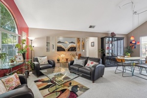 Stunning 3BR/2.5BA facing a greenbelt! Welcome home to your personal oasis. This meticulously maintained and updated residence offers the perfect blend of comfort, style, and serene living, while offering just over 1900 sq.ft. of living space that combined with the high ceilings, feels even larger. This home features an open floor plan that seamlessly connects the living room and dining room areas with the kitchen.