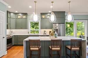 The completely remodeled kitchen showcases custom cabinetry, a quartz island, stainless steel appliances, and high-end finishes-ideal for hosting or everyday enjoyment. Enjoy your morning coffee or evening wine on the expansive, east-facing deck with beautiful treetop views. Downstairs, two 400-square-foot unfinished rooms (currently used as a workshop and gym), two bedrooms, a full bath, a bonus area with wet bar, and a second deck offer incredible flexibility and space for all.