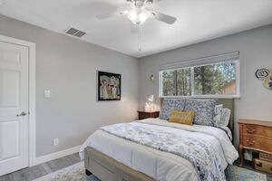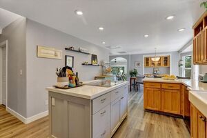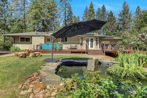 Nestled in the charming village of Meadow Vista, this gem offers a perfect blend of modern comfort and rustic charm. This recently remodeled home is thoughtfully designed and meticulously maintained. Step inside to discover a world of contemporary elegance, where new flooring stretches throughout, complemented by freshly painted interiors and exteriors. The updated kitchen is a culinary enthusiast’s dream, featuring gleaming new countertops, state-of-the-art appliances, and a versatile island perfect for casual dining or entertaining. The bathrooms have been completely revamped, offering spa-like retreats within the comfort of your own home. A tiled gas fireplace, flanked by built-in bookshelves, provides a cozy focal point in the large gathering room. Energy efficiency is key with the addition of new solar panels, tank-less water heater and a whole-house fan keeps things cool. The exterior is equally impressive, boasting a new front deck, new roof with leaf guard gutters, and a spacious back deck ideal for entertaining. The serene Koi pond, adds a touch of tranquility to the outdoor space. Ample parking has room for RVs. Community amenities include grocery and hardware stores, a park with a community center, and great schools.