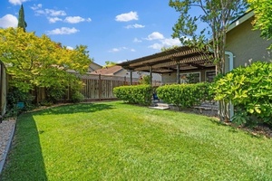 Additional amenities: LVP floors, Central A/C, whole house fan, recess lights, plantation shutters, crown molding & H20 softener. New comp roof 2023. Finished 2-car garage has epoxy flooring & EZ access attic storage. This tranquil backyard has it all; covered patio, mature landscaping, grassy lawn, multiple seat areas, large storage shed & scenic foothill views. New front gates w/ potential RV/ boat parking.