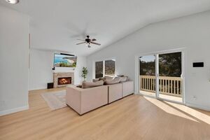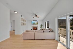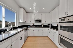 This home is loaded with modern upgrades, including newer laminate flooring throughout the living areas, a Vivint smart home system, energy-efficient solar panels, and a NEMA 14-50 EV charging outlet-perfect for electric vehicle owners. Step inside to a bright and airy main floor, featuring a spacious living room with vaulted ceilings that create an inviting ambiance. Adjacent to the Living Room is the open-concept kitchen and family room which provide the perfect space for entertaining or relaxing with loved ones, all while enjoying picturesque views of the surrounding hills. Just off the family room, step out onto a large deck that takes full advantage of the views. The kitchen features granite countertops, stainless steel appliances, and ample space for all your culinary adventures. A main-floor bedroom and full bathroom offer flexibility for guests, a home office, or multi-generational living.