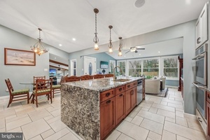 The adjacent family room features a large wood burning fireplace warmed with tons of natural light spilling through a custom sliding glass door and window combination. The primary suite is a luxurious retreat with a beautifully designed CUSTOM ENSUITE BATHROOM, while five additional bedrooms provide ample space for family, guests or convert into GYM or HOME OFFICE.