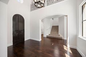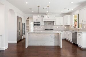 The chefs kitchen features a natural stone island, quartzite counters, Miele appliances, pot filler, and walk-in pantry. A cozy family room, powder bath, and guest suite with yard access complete the main level. Upstairs, find a loft, 4 bedrooms, and a luxurious primary suite with private balcony, soaking tub, dual vanities, and walk-in closet.