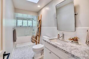Private, single level retreat on the border of Rancho Santa Fe feels like you’re away from it all, yet minutes from fine dining, shopping, golf, I-5 and Del Mar beaches. This impeccably remodeled, mid-century modern is perched atop a gated 1.05 acre lot that offers an abundance of outdoor spaces to enjoy. Extensive renovation using the finest materials & finishes provides for a modern, yet warm & inviting place that feels like home.