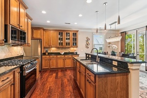 Offering 3,500 square feet with a long list of upgrades, features, and details that leave out nothing! From the exterior Cement Shake siding, Multiple Screened Porches and Deck - - to the interior Hickory Hardwood Floors, 9’ ceilings, Granite Counter Tops, and Butler’s Pantry with wet bar; you get it all!
