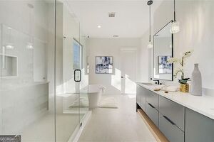 Welcome to contemporary luxury! This custom-built home features a grand two-story foyer, a chef-inspired kitchen with European cabinetry, a large island, and a walk-in pantry. The open-concept living space includes a living room with 20-foot ceilings and European triple-glazed windows. The main level boasts a luxurious owner’s retreat with a spa-like ensuite bathroom, a private office, and access to a covered back deck. Upstairs, there are four additional bedrooms and a loft area. The terrace level is ready for customization. The property is situated on over half an acre of land, featuring a gated entrance and no HOA. Located in the Seckinger High School district, close to shopping, dining, the Mall of Georgia, Gwinnett Exchange, and Lake Lanier. With easy access to highways 85 and 985, this home offers both luxury and convenience.
