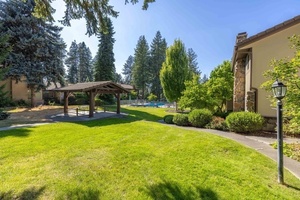 Rare 3 Bed, 2.5 Bath Condo with attached 2 car garage! The sizeable primary bedroom has an ensuite bath with double sinks, double closets and additional walk-in closet. The other two bedrooms share a full bathroom and have windows looking out to the courtyard. Experience the lovely grounds directly adjacent to the Waikiki Walking Trails & Little Spokane River wilderness, and enjoy summer fun at the community inground pool. Sit in the sun on the deck or enjoy cool shade on the patio, and look forward to cozy living room fires when the weather turns chilly!