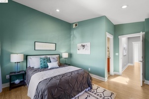 Upstairs, each bedroom suite offers its own full bath and generous closet space, creating a private retreat for residents and guests alike. The ground level includes a flexible bonus space-ideal for a home office or creative studio-alongside an attached gated entry single-car garage with in-unit laundry. A home that balances style, practicality, and location in one of Oakland’s most connected neighborhoods.