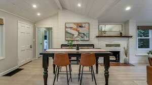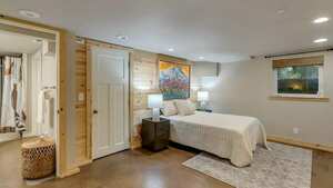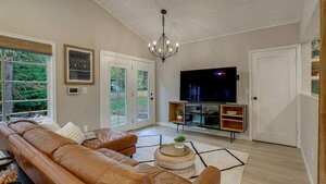 Vaulted ceilings and custom craftsmanship greet you as you enter. New LVP flooring flows through the open floor plan, leading to a remodeled chef’s kitchen with custom cabinetry, quartz countertops, tile flooring, and high-end appliances. The upper level features three bedrooms with new closets and an updated bathroom. Downstairs, your private primary suite awaits with an updated bath, double sinks, quartz countertops, and a walk-in shower. Enjoy the tranquil setting from the oversized deck or covered patio with custom wood paneling. The detached garage is converted into a separate living space with a Murphy bed and full bathroom, offering endless possibilities. This unique property blends one-level living with natural beauty, just minutes from shops, restaurants, and more!