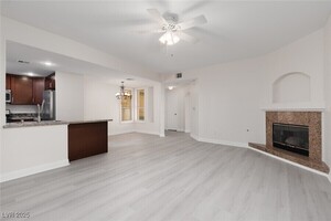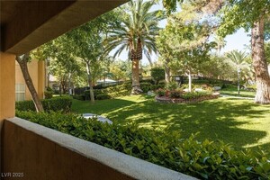 Welcome to the sought-after, guard-gated community of Red Hills in Summerlin, where comfort meets convenience. This beautifully upgraded ground-level condo features an oversized one-car garage, as well as outdoor patios with peaceful views of the greenbelt and pool. Inside, you’ll find luxury vinyl planks and ceramic tile flooring- no carpet here. A spacious living area features a cozy gas fireplace with a granite surround, while the kitchen boasts granite countertops, soft-close drawers, upgraded cabinetry, and stainless appliances. Primary suite with a ceiling fan, separate tub and shower, and a generous walk-in closet. A split-bedroom floor plan ensures privacy, and the separate laundry room comes complete with washer, dryer, and shelving. Residents enjoy access to resort-style amenities: pool, spa, fitness center, guest parking, and beautifully landscaped grounds.