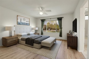 Paired home that lives like a single family ranch. Main floor living in this freshly painted townhome near Canterbury Park and playground, shopping, and public transit. Bonus! It’s in Cherry Creek school district. Walk right in from the garage to the main living area, including a main floor primary bedroom suite with a walk-in closet, skylight, and spacious bathroom. The laundry is near the bedroom and washer/dryer are included. There are two more bedrooms upstairs: one with a balcony and a full bath for your guests or roommates.