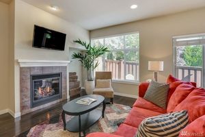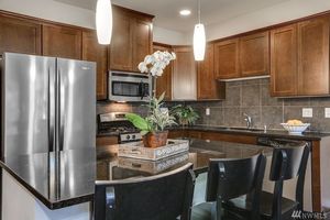Gorgeous, Energy efficient 4 Star Built Green Townhome walking distance to Mill Creek Town Center! Island kitchen with granite counters & stainless appliances. Gleaming hardwood floors throughout main level. Master suite features spacious bath & walk-in closet. Upstairs laundry room. Gas Fireplace, Radiant Gas Heat & Tankless hot water. Private patio, 1 car garage + 2nd parking in driveway & plenty of guest parking! Level entry from garage to main floor-only one set of stairs! Move-in ready! No rental cap! Pets welcome. Easy I-5/405 Access.