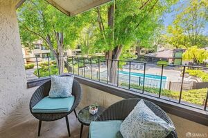 Step onto your private balcony overlooking the pool, with bonus storage-perfect for outdoor essentials. The sleek bathroom showcases a contemporary vanity, designer tub/shower tile surround, primary suite includes walk in closet. Brand-new furnace and ducting, in-unit washer/dryer. Anlin Del Mar double pane premium windows. Additional highlights include a private one-car garage with shelving storage (same building), plus an extra uncovered parking space. Enjoy access to community amenities such as a sparkling pool and clubhouse.