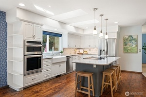 Discover your own private sanctuary in this beautifully updated 3-bed, 2-bath home on nearly 2.5 peaceful acres (2 tax parcels) in Belfair. Light pours through skylights into a stunning custom kitchen, while spacious living and dining areas invite gatherings and quiet moments alike. Outside, your park-like retreat includes manicured lawns, a sport court, and apple trees surrounded by evergreens-plus a huge 40'x60’ 4-car garage/shop, perfect for car collectors, RVs, boats, or creative projects. Whether hosting friends or savoring the quiet, this tranquil setting feels worlds away yet is minutes from town.