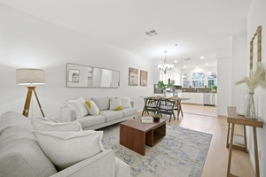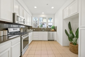 Luxury living awaits in the highly desirable Mission Place community! This bright and spacious townhome features an open-concept floor plan with soaring ceilings, large dual-pane windows, and recessed lighting, creating a warm and inviting ambiance. The gourmet kitchen boasts granite countertops, stainless steel appliances, and freshly painted cabinetry, seamlessly flowing into the freshly painted dining and living areas perfect for entertaining.