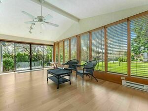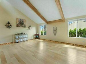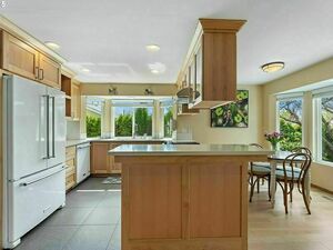 The home’s engineered hardwood flooring adds warmth and refinement throughout. The remodeled kitchen is thoughtfully designed with a gas range for precision cooking, a refrigerator with an ice maker, and modern finishes, making it both functional and stylish. The spacious primary suite offers a serene retreat, while the updated bathrooms showcase superior craftsmanship. Storage abounds in the oversized three-car garage, complete with extensive built-in cabinetry. Recent upgrades include a new composition roof (2015) built for durability and a 90% efficient gas furnace with central air conditioning, ensuring year-round comfort.