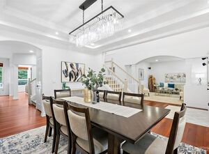 This stunning custom-built Craftsman home, located on a ¾ acre lot at the end of a private cul-de-sac, features 5 bedrooms and 4.5 baths, all with luxury finishes. Highlights include Brazilian cherry hardwood floors, granite countertops, and high ceilings that enhance natural light in the family room. The main floor has a bedroom with an en-suite bathroom, while the upper level offers 4 additional bedrooms, each with an en-suite bathroom.