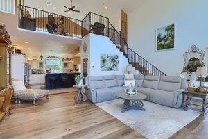 The famous “House On The Hill” is For Sale! Experience amazing Sierra Mountain views in this immaculate, custom home built by Custom Plus Construction. It boasts 3 bdrms, 2 baths, 2,435 sq.ft (tax records differ-BTV), with an open loft (21’ vaulted ceiling). Wood floors in all bdrms. Gourmet kitchen with dbl ovens, wine frig, soft-close cabinetry, elect cooktop & one-of-a-kind granite countertops imported from Africa! Primary bath was recently remodeled w/ brushed gold fixtures, shower has multiple shower heads, seamless shower door, & LED front & back-lit vanity mirrors.