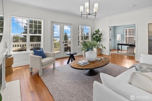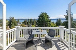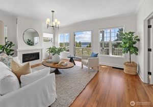 In Madrona Heart with gorgeous views! This 1911 Traditional has a smashing blend of old & new. High ceilings, gracious formals, multiple French Doors, fir & hardwood floors, multiple decks & rocking-chair front porch. Extensively renovated with new professional kitchen, new bathrooms, newer furnace, A/C, 3 skylights, 2 gas fireplaces & lots of new hardware & fixtures. Full Primary Suite with private deck & 2nd bed & bath on top floor. Lower is MIL/ADU ready with rec room & en suite bedroom. Setting is street-to-street lot, collector-level gardens stroll down to 38th. Absolutely beautiful property in a great in-city pocket so close to Madrona cafes/shops/restaurants. Easy access to downtown Seattle, UW & eastside too. Get ready to fall hard.