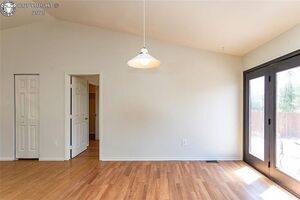 The home boasts a spacious master bedroom complete with an en-suite bathroom for added privacy and comfort. The split-bedroom design ensures that the master suite enjoys its own separate space, while the other two bedrooms are thoughtfully placed on the opposite side of the home. High vaulted ceilings throughout the main living areas create an airy, open feel, enhancing the overall sense of space.