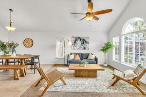 The remodeled kitchen just might steal the show, featuring granite counters, newer appliances, ample cabinetry, and a pass-through to the formal dining room. The layout flows effortlessly into the family room, perfect for everyday living and entertaining. Fresh interior paint, updated lighting, and two stylishly remodeled guest baths elevate the home’s modern feel. Major systems are dialed in too, HVAC (2019), carpet (2018), updated windows, a newer water heater, and a 50-year roof with leaf guards.