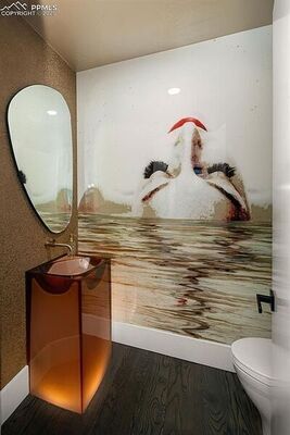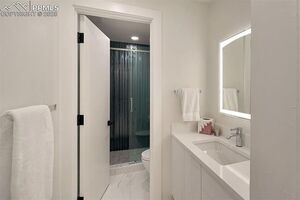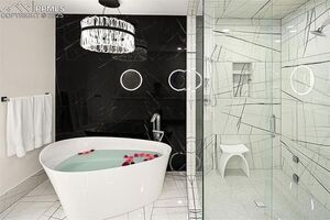 The Couture-Inspired Powder Room Features A Back-Lit Pedestal Sink And Artistically Designed Wall With Shimmering Paint. Spa-Like Primary Bath Offers Heated Floors, Steam Shower, Soaking Tub, And Luxurious Floating Vanities. All Bathrooms Include LED Front-Lit Mirrors, While Custom Closet Systems Ensure Maximum Organization. Home Is Wired With A State-Of-The-Art Sound System, Featuring Focal Speakers Inside And Out For An Immersive Audio Experience. New Security System Offers Peace Of Mind, While Whole House Automated Blinds And Lights Are Ideal Advantages.