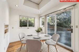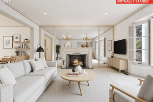 Nestled in the desirable Montmore neighborhood of SW Portland, this inviting 4-bedroom, 2.5-bathroom traditional home offers the perfect blend of classic charm and modern comfort. Featuring a spacious layout, the home boasts a formal living room, formal dining room, and a large kitchen with a cozy eating area. Off the kitchen, a family room features built-ins, a warm fireplace and a wine cellar. Upstairs, the versatile bonus room could be a home office, playroom, or media room. Four bedrooms provide plenty of space for rest and relaxation.