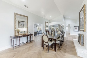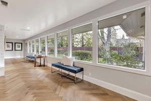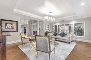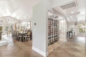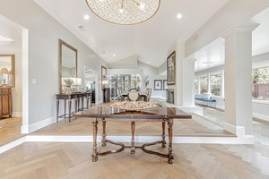 Nestled in the heart of Arden Oaks, this stunning luxury home blends warmth with thoughtfully curated amenities. Stunning herringbone wood flooring flows throughout the first level, showcasing an elegant glass-enclosed, temperature-controlled wine closet. The chef’s kitchen boasts Thermador appliances, a waterfall marble island, farmhouse sink, walk-in pantry, and a separate butler’s kitchen (scullery) for effortless prep. Built for entertaining, it features 3 ovens, making hosting a breeze.