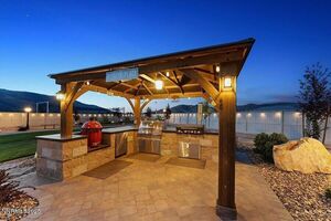 Step outside and discover true outdoor living - featuring an extensive paver patio and walkways that extend to a covered outdoor kitchen with a built-in gas BBQ, Blackstone grill, smoker, refrigerator and plenty of counter space. The gas fire-pit is perfect for cool evenings and the additional gazebo offers another space to take in the beautiful surroundings. And don’t forget the hot-tub! Located just off the primary suite it’s the perfect way to relax and recharge.