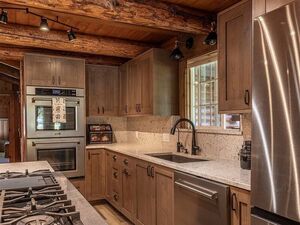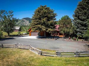 Up above Robie Creek on the plateau, this stunning log home offers 360° mountain views and peaceful Idaho living. The recently remodeled chef’s kitchen features quartz countertops, a double oven, 8 burner gas cooktop and an open floor plan. The great room showcases a soaring floor-to-ceiling stone fireplace, with a loft and balcony above. The home also includes an attached apartment with kitchenette-ideal for multi-generational living.