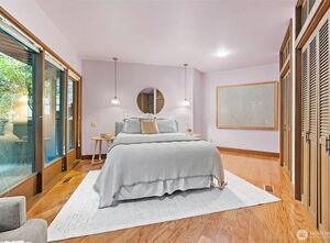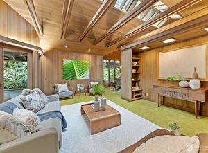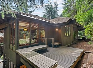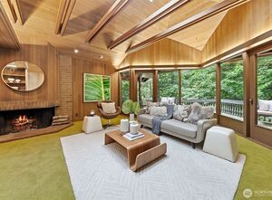 A Mid-Century Retreat Designed by Ralph Anderson. Nestled in a serene setting, this home blends architectural distinction with the warmth of cedar finishes inside and striking cedar paneling on the exterior. Expansive windows, skylights, and vaulted ceilings fill the interiors with natural light. The upper level showcases the kitchen, dining, living, and family rooms, all with seamless flow to expansive decks and patios. The lower level offers a private primary suite with a wood-burning fireplace & patio, along with additional bedrooms for comfort and flexibility. Mature landscaping frames the striking covered entry, setting the tone for this exceptional residence. Peacefully tucked away from the city, yet close to all the island’s many amenities.