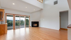 Two homes provide excellent flexibility for multi-generational living or caretaker quarters. The main residence, set toward the back of the property, showcases sweeping views in every direction, including restored native habitat, fertile fields, and mature forest plantation. Its gourmet kitchen features granite counters, an island with eating bar, and a gas range. The living room is enhanced by soaring ceilings and a gas fireplace, while the wraparound deck captures the beauty of the surrounding countryside. The lower level is designed as a separate living space with its own entrance and full kitchen.