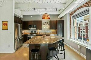Spacious, industrial style corner loft in the historic Chown Pella Condominiums, one of the most iconic buildings in the Pearl District. True loft-style living with big windows and tons of light, huge post & beam timbers, high ceiling, exposed brick and concrete walls. Single level living with large den/office that could be a 3rd bedroom. Wood floors were refinished and HVAC systems updated by current owner. Two beautifully updated bathrooms, large primary suite with walk-in closet, updated kitchen with island and SS appliances and wine fridge. Building was seismically retrofitted during the 1996 condo conversion. Unit includes 2 parking spaces in gated outdoor lot and 1 deeded storage unit. Beautiful rooftop common area is a must see! Lots to walk to including Whole Foods, World Foods, many restaurants, shopping, coffee shops, bars, galleries and multiple gyms. First Thursday art walk is right outside your door!