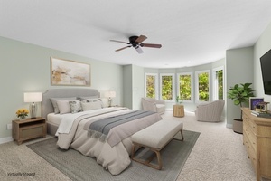 Two story entry features a stunning Tiffany-styled chandelier. Formal Living (or flex space) has a wall of windows to look out into the woods. Opposite is a spacious Den with French doors. Continue on into the formal dining room, or opt to walk into a room that almost feels like a treehouse! The Sunroom has 2 walls of windows that really bring the outside in! You won’t want to leave once you see this space! The views continue on from the bow window in the kitchen, with a window seat ready for you to relax and enjoy! Kitchen has a large center island, high end appliances and plenty of cabinet space. The family room with vaulted ceiling has a fireplace with built in bookshelves and the slider to the deck.