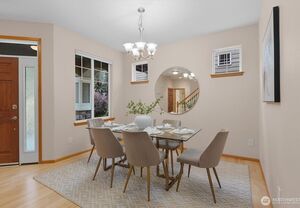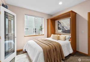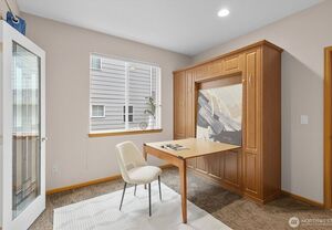 Welcome to this beautifully maintained 4BD/2.75BA home in Renton, blending comfort with a well-planned layout. The main level features an open kitchen with walk-in pantry, wine fridge, and updated countertops, plus a sizable dining room perfect for gatherings. A versatile downstairs bedroom with Murphy bed adds flexibility for guests or a home office. Step outside to a newly poured patio, fully fenced yard, garden beds, and a peaceful greenbelt backdrop. Upstairs offers a generous primary suite, two more bedrooms, a flex room, and a convenient laundry room. With a new roof, furnace, A/C and oversized 2-car garage, this home is move-in ready. Quiet community close to it all, plus a community playground!