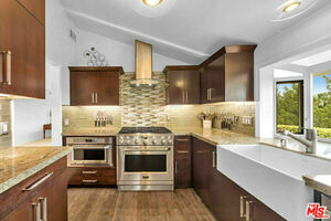 This spectacular remodeled 4 bedroom and 3 bathroom view home on a cul-de-sac, has undergone, a no expense spared upgrades with high end custom work throughout. California Deluxe windows, Life Source Elite water filtration, Leaf Filter Rain Gutters, Solar Panels, Thermasol Steam Shower in the primary bath and both bathrooms with under cabinet floor heating. The kitchen is a dream with Granite Counter tops and Glass Tile Backsplash. Stainless Steel appliances, GE Monogram 48" fridge/freezer, Monogram 6 Burner range, Monogram Advantium Speedcook oven and a Farmhouse porcelain sink. Motorized shades in Kitchen Area and Living room. Entertainers backyard with Heated pool and Spa, Rock Waterfall, Built-in Gas Barbeque with storage cabinet and sink. Custom built patio awning with center light, sconce lighting and sun shades. Firepit area with post lights and outdoor low voltage lighting. Two car garage is oversized with cabinets, built-in shelves and work bench. The home is located in the award-winning school district of Granada Hills Charter High School.