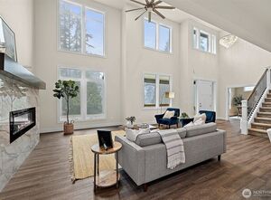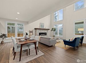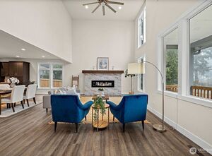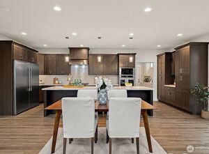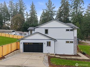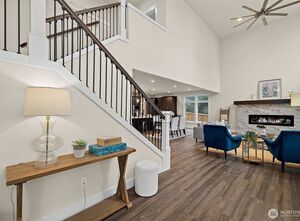 Den and ¾ bath on the main floor, black iron railing, 9" ceilings on main and upper floor, custom built-ins for kitchen, mudroom & hallway. Upstairs the primary suite is spacious with a spa-level ensuite bathroom while both secondary bedrooms have walk-ins. 3-car tandem garage, forced air and heat pump for heating/cooling. Just minutes to I5,18 & 167.