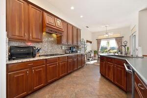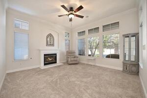 The spacious master bedroom includes private backyard access, and three additional generous bedrooms provide ample space for family or guests. Both the formal living and family rooms boast cozy gas fireplaces, creating inviting spaces for relaxing. The gourmet kitchen, with its large center island and dining bar, flows seamlessly into the family room, perfect for gatherings. Additional comforts include a whole house fan, a newer HVAC system, and pre-wired for a sound system.
