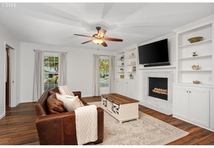 This 1968 Beaverton home blends classic style and thoughtful updates, offering light-filled rooms and versatile spaces for everyday living and entertaining. Original hardwood floors run throughout and large windows bring in abundant natural light. The main floor includes a welcoming living room, a large dining room, a family room with built-ins & a wood-burning fireplace, and a kitchen that connects easily to dining and family spaces. Enjoy the fenced backyard with four raised beds, a covered patio perfect for summer barbecues, and a freestanding insulated Tuff Shed.