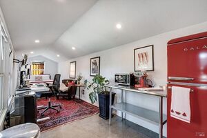 It’s the lifestyle! Home + Rental + Garage! All there for you. This classic 1920s Napa Valley Craftsman blends vintage charm w/ thoughtful updates. Period woodwork, high ceilings, and original inlaid hardwood floors set the tone, while dual-pane windows (except laundry) and updated electrical/plumbing (to code) add peace of mind. The kitchen shines with a Bertazzoni stove, custom wood countertops (refinished 3/25), glass-front cabinets, dine-and-wine bar, and top-of-the-line LG dishwasher. All appliances, TVs, and even a 280-bottle wine cooler convey.