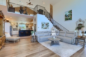 The famous “House On The Hill” is For Sale! Experience amazing Sierra Mountain views in this immaculate, custom home built by Custom Plus Construction. It boasts 3 bdrms, 2 baths, 2,435 sq.ft (tax records differ-BTV), with an open loft (21’ vaulted ceiling). Wood floors in all bdrms. Gourmet kitchen with dbl ovens, wine frig, soft-close cabinetry, elect cooktop & one-of-a-kind granite countertops imported from Africa! Primary bath was recently remodeled w/brushed gold fixtures, shower has multiple shower heads, seamless shower door, & LED front & back-lit vanity mirrors.