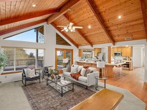 Outside, take in the gorgeous views from the beautiful redwood deck, or relax in the built-in spa. This home was intentionally built facing south, with abundant windows to maximize natural light. The curb appeal is unmatched with a striking entrance that welcomes you home. The property also features designated concrete work for basketball games, providing a fun & active outdoor space.