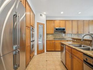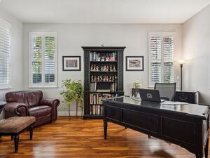 Enjoy energy independence with a fully owned 9.2kW solar system, Low-E2 double/triple-pane windows and sustainable materials. Thoughtful upgrades include custom French doors, Hunter Douglas shutters, closet organizers, a tech hub; full insulation in walls, ceilings and garage. The great room features built-in surround sound, a fireplace, and wet bar-ideal for entertaining. The gourmet kitchen impresses with granite counters, an island, abundant cabinetry and high-end Dacor and KitchenAid appliances.